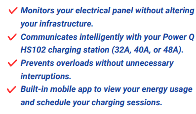 It dynamically adjusts the available power delivered to your EV charging station, without exceeding the capacity of the main circuit breaker.